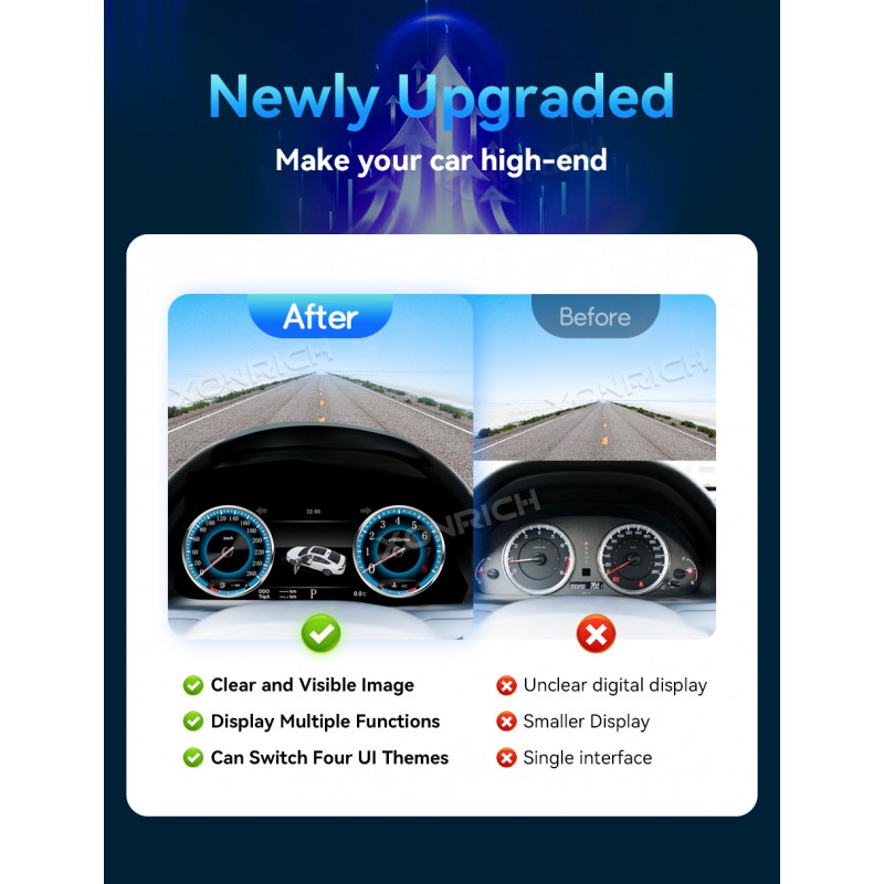 Дигиталното LCD табло за Honda Accord (2003–2007 г.) с автоматична трансмисия е модерно решение, което напълно заменя оригиналния инструментален панел. Оборудвано с 10.25-инчов HD дисплей, таблото поддържа всички фабрични функции на автомобила и осигурява бърза, плавна и надеждна работа благодарение на Linux операционна система. Устройството стартира само за 2 секунди и предлага 3 различни UI стила (Classic, Comfort и Sport), които могат да се сменят според предпочитанията на водача. Монтажът е лесен и бърз, без нужда от допълнителни модификации. Важно: Таблото е съвместимо само с автомобили с автоматична трансмисия и не е подходящо за ръчни скорости. |