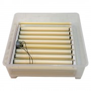 Съвременен автоматичен инкубатор, създаден за максимална ефективност и лесна употреба, подходящ както за начинаещи, така и за по-опитни потребители. Инкубаторът разполага със сензорни бутони и цифров дисплей, който показва в реално време температурата, влажността и броя на изминалите дни от инкубацията.
