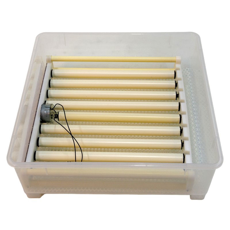 Най-съвременната ролкова система за завъртане на яйцата позволява те да бъдат поставени в хоризонтално положение – най-близко до естественото при люпене. Тази технология дава възможност за инкубиране както на малки, така и на по-големи яйца, без нужда от допълнителни тави или приставки.