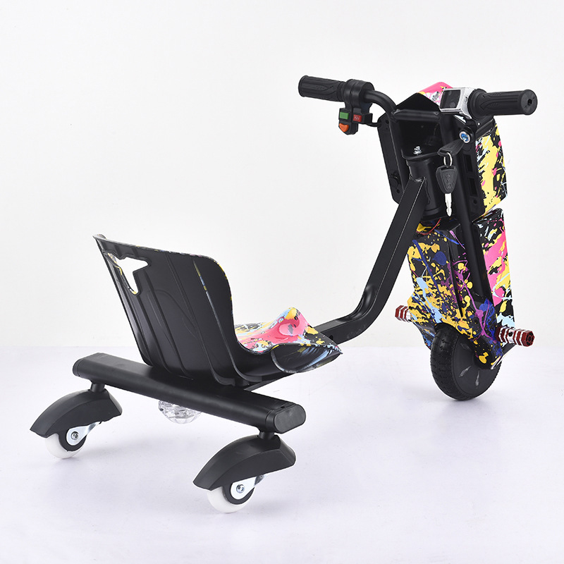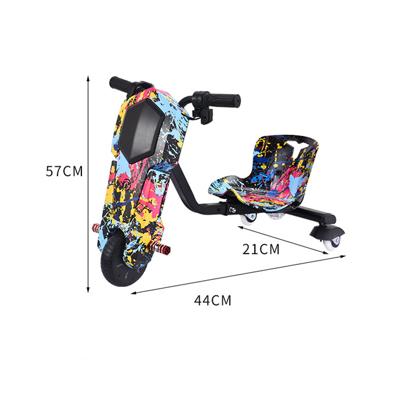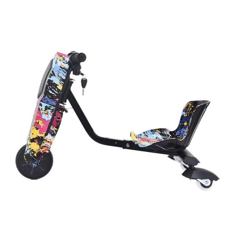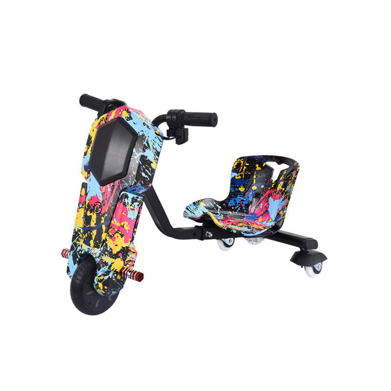 | Цветна електрическа дрифт триколка – 150W | LED светлини | 3 скоростиХарактеристикиМотор: 150W безчетков, 36V (предно задвижване) Батерия: 36V 3.0Ah литиева (с възможност за 3.6 / 4.0 / 4.4Ah) Пробег: 8–15 км с едно зареждане Зареждане: 3–5 часа Максимално тегло на водача: до 60 кг Скорост: 3 нива – 7, 10 и 12 км/чЕкстри и удобства:Удобна спортна седалка – за перфектен контрол и 360° завъртания Непробиваема предна гума (6.5") – устойчива на износване Светещи PU задни гуми – без нужда от батерии, светят при движение LED дисплей – следи скорост и заряд на батерията Bluetooth говорител – свържи музика директно от телефона Клаксон, бутон за включване и индикатор за батерия Сгъваема стойка и регулируемо кормило (3 степени)Материали: Издръжлив корпус от полипропилен + подсилена метална рамкаРазмер на опаковката: 57 x 44 x 22 см Включено зарядно: стандартно 42V DCЦвят: Цветна/пъстра визия (multicolor graffiti style) – уникален дизайн, който се забелязва!и) Гаранция на продукта: 24 месеца Гаранция на батерията: 6 месеца Превърнете всяка разходка в приключение! Представяме ви стилна електрическа триколка с пъстър дизайн, създадена за дрифт, забавление и стил. Идеална за деца и тийнейджъри, които обичат движението и ефектните светлини. |