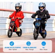 | Детски електрически мотор 300WХарактеристикиМотор: 300 W електромотор Максимална скорост: до 25 km/h Автономия: до 15 km с едно зареждане Гуми: 12-инчови, стабилни и подходящи за различни терени Задвижване: електрическо, лесно за управление Батерия: бързо зареждане и дълъг живот Подходящ за деца: безопасен и лесен за управление Какво получавате: Детски електрически мотор EV12M Зарядно устройство Ръководство за употреба Представяме ви стилен и динамичен детски електрически мотор, който ще донесе истинско удоволствие и свобода на малките пилоти! С мощност 300 W, скорост до 25 км/ч и пробег до 15 км с едно зареждане, този мотор е идеален избор за деца, които обичат движение и приключения. Подходящ е за деца, които искат да се забавляват на открито с електрическа играчка – безопасна, качествена и с дълъг пробег. Направете подарък, който ще се помни! |