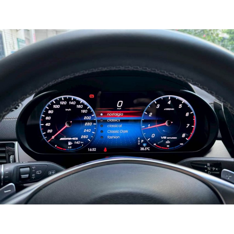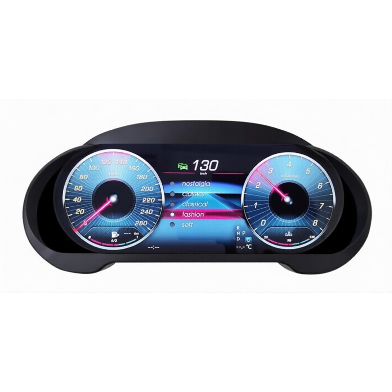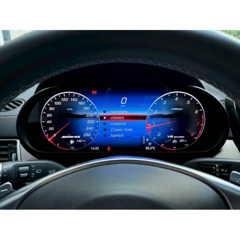 Дигитален километраж (Digital LCD Cluster) за Mercedes-Benz , който напълно трансформира интериора и усещането при шофиране. Това не е просто замяна на аналоговите уреди, а цялостен дигитален кокпит с модерна визия и интелигентни функции. Големият 12.3" HD дисплей предлага изключително ясна картина, отлична видимост при всякакви условия и автоматична адаптация към светлината. Независимо дали шофирате през деня или нощем, информацията остава четима и без напрежение за очите. С вграден Apple CarPlay получавате директен достъп до навигация, музика и приложения – всичко това точно пред вас, без да отклонявате вниманието си от пътя. Навигацията се визуализира директно в таблото, което прави шофирането по-безопасно и удобно. Мултимедията предлага различни визуални режими (Classic, Sport, Racing и др.), които можете да персонализирате според вашия стил. Интерфейсът е модерен, бърз и интуитивен, като същевременно запазва всички фабрични функции на автомобила. Монтажът е plug & play – без рязане на кабели и без сложни модификации. Устройството е напълно съвместимо с CANBUS системата на автомобила и поддържа всички оригинални системи като асистенти за безопасност, предупреждения и управление от волана. |
