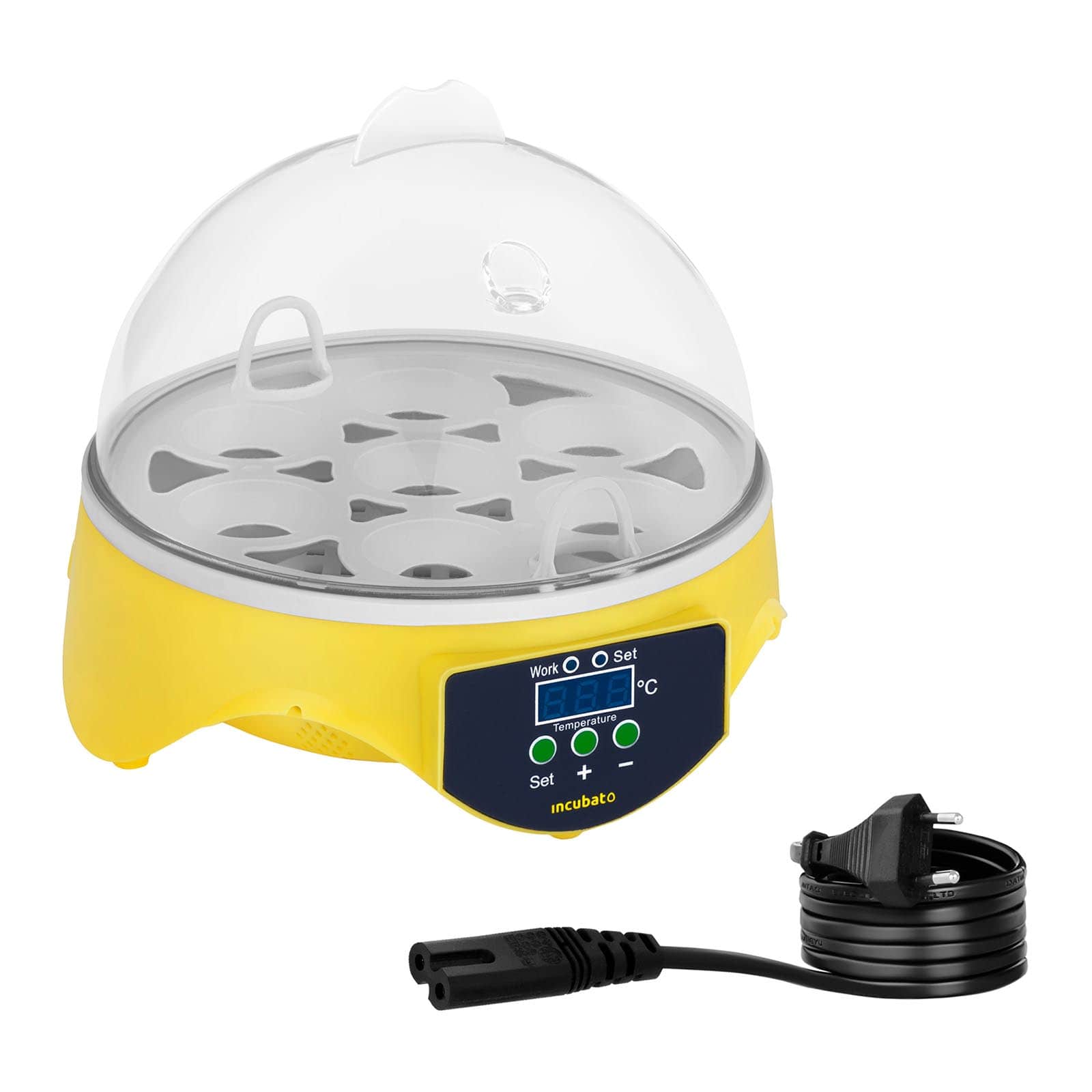 Компактен и издръжлив, този мини инкубатор е идеален за домашни условия, класни стаи или любителски хоби проекти. Позволява наблюдение на целия процес на инкубация благодарение на прозрачния корпус. В него можете да излюпите до 7 яйца едновременно и да се наслаждавате на всеки етап от процеса. Инкубаторът използва керамичен нагревателен лист за равномерно и бързо нагряване, като осигурява стабилна температура за оптимално излюпване. Температурата се контролира интелигентно чрез LED дисплей, с прецизно усещане на разликата до 0,01°C. Гаранция 24 месеца! |