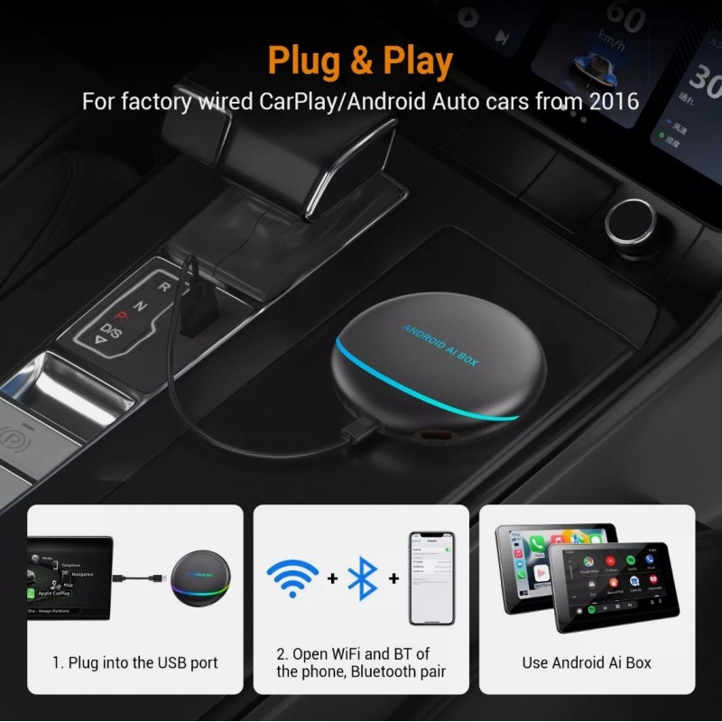 Надградете мултимедийната система на Вашия автомобил с компактния AI Box Android 12. Това устройство предлага бърза работа, богата функционалност и безжична свързаност за още по-голям комфорт по време на път. Подходящ е за 98% от моделите автомобили. Предварително инсталирани са основни мултимедийни приложения като Youtube, Maps. Поддържа Google Play магазин за изтегляне на приложения. |