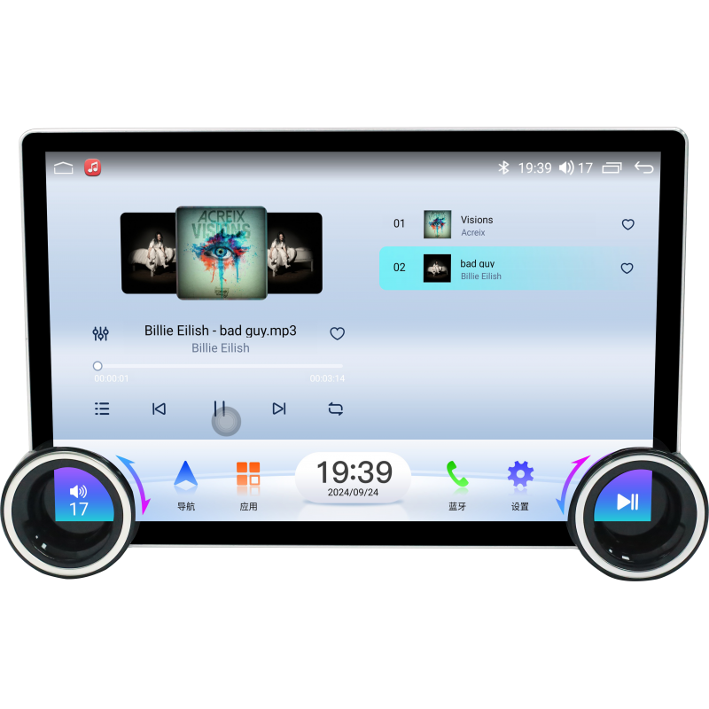 Стартовият панел на мултимедиите, предлагани от carmedia.bg, е проектиран с мисъл за водача и разполага с всички основни функции и приложения, от които ще се нуждаете. Лекият дизайн, удобната функционалност с вградено навигационно приложение и персонализираният център за приложения ще ви позволят лесно да навигирате между функциите на радиото, както и да имате бърз достъп до любимите си приложения. Различните цветови теми ще добавят индивидуалност към Вашия автомобил, просто изберете своя стил.