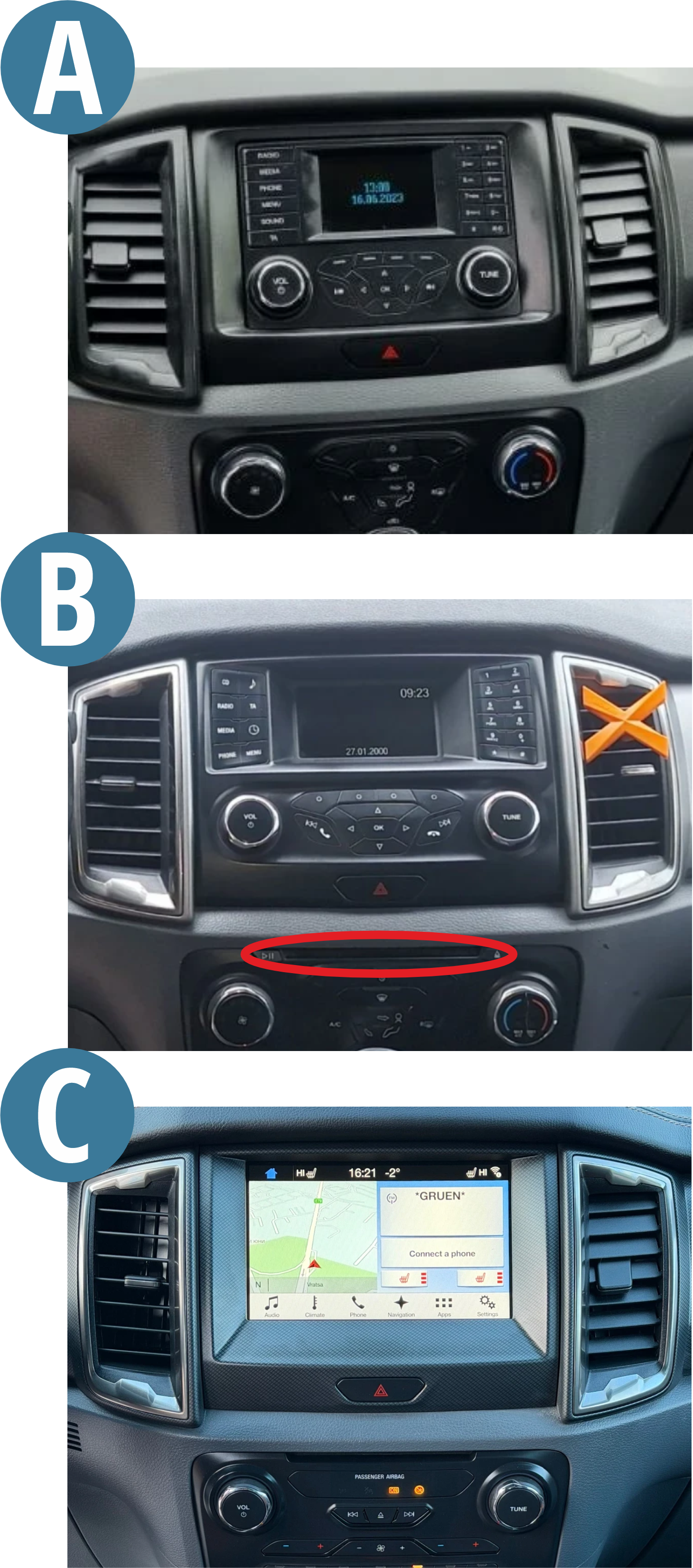 За да бъде мултимедията напълно съвместима, не пропускайте да проверите таблото на Вашия автомобил: