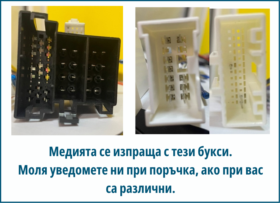 Всички необходими кабели и CAN bus декодери (в случай на цифрови бутони) са включени в комплекта на мултимедиите, предлагани от carmedia.bg