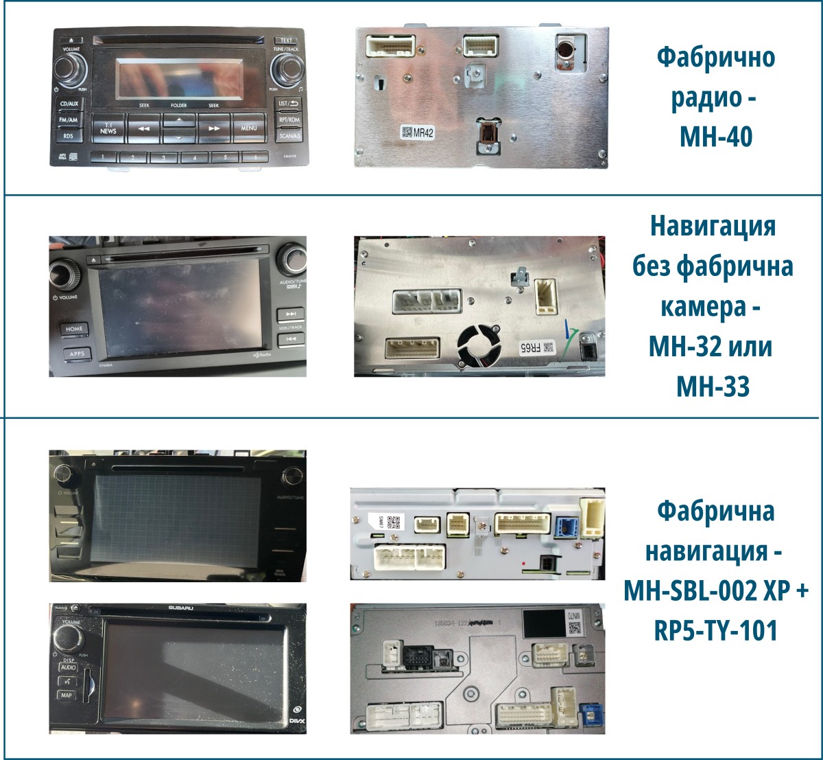| Внимание!За да бъде мултимедията напълно съвместима с Вашия автомобил, не пропускайте да проверите буксите на оригиналното си радио. Моля, сравнете вашето фабрично радио със снимките. Ако Вашият автомобил е оборудван с различен тип радио или букси, моля изпратете: