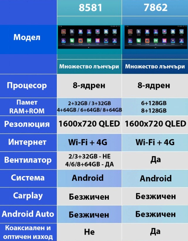 | Висока производителностМощен 8-ядрен 2.0 / 1.6 Ghz процесор (UIS7862 / 8581A)Процесорите впечатляват с високата си производителност и оптимизиран софтуер, който ви позволява да използвате множество приложения едновременно без прекъсвания или забавяния, да се наслаждавате на филми и да изпълнявате всякакви други задачи, без да се ограничавате. Сред водещите доставчици на Android мултимедийни системи, carmedia.bg предлага най-добрите процесори, осигуряващи перфектна интеграция с Вашия автомобил. |