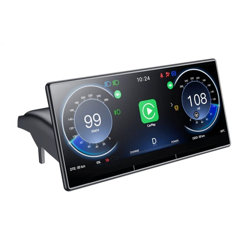 8.9″ дигитален инструментален клъстер с висока разделителна способност за Tesla Model 3 / Model Y. Широк 2.5D извит екран, OTA ъпдейти, избор на теми и важни предупреждения за безопасност – всичко това в стилен модерен панел. |