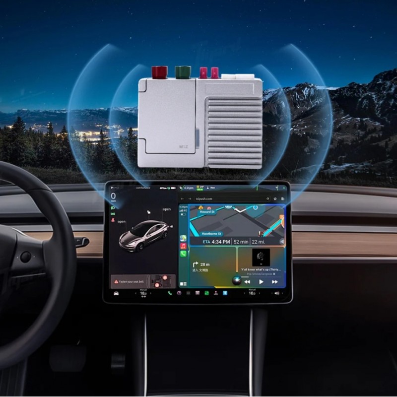 EKIY безжичен CarPlay / Android Auto декодер за Tesla Model 3 / Y Интерфейс модул с Mirror Link и AirPlay функция. Позволява лесна интеграция на смартфон с оригиналния екран на Tesla – безжично и без промяна на кабели. |