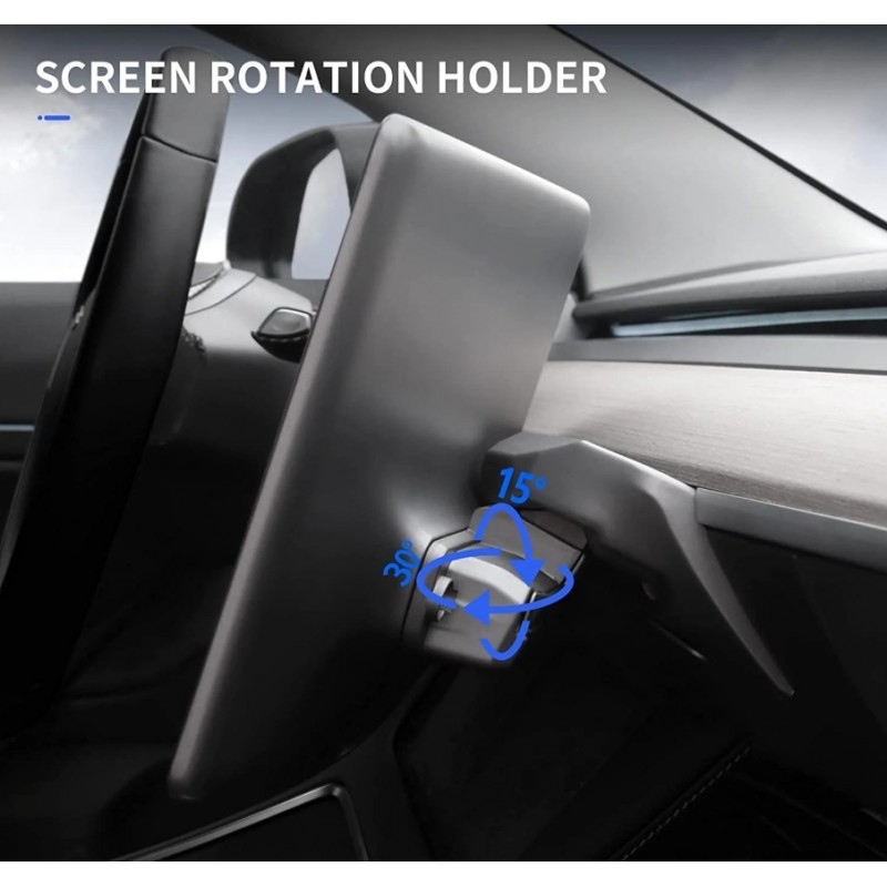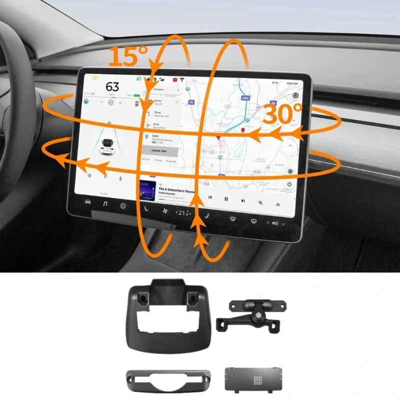 Регулируема скоба за екран за Tesla Model 3 (2017-2023) и Model Y (2020-2025). Позволява завъртане 30° на ляво/дясно и накланяне 15° нагоре/надолу. Скоба от алуминий + ABS капак, стабилна и с регулируем въртящ момент.